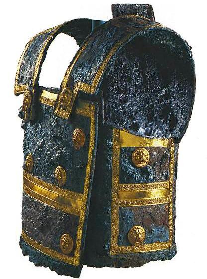 (ΦΩΤΟ: Ο εκπληκτικός "Θώρακας του Φιλίππου" στους βασιλικούς τάφους των Αιγών, Βεργίνα, Ημαθία. Από τα θαυμαστότερα παγκοσμίως αρχαιολογικά ευρήματα, λάμπει ο χρυσός, θαρρείς μυρίζεις τον ιδρώτα του βασιλιά, ακούς νομίζεις την κλαγγή της μάχης. Καμία αμφισβήτηση, είναι όμοιος με το θώρακα του Μεγ. Αλεξάνδρου στο ψηφιδωτό της Νεάπολης της Μάχης με το Δαρείο.)