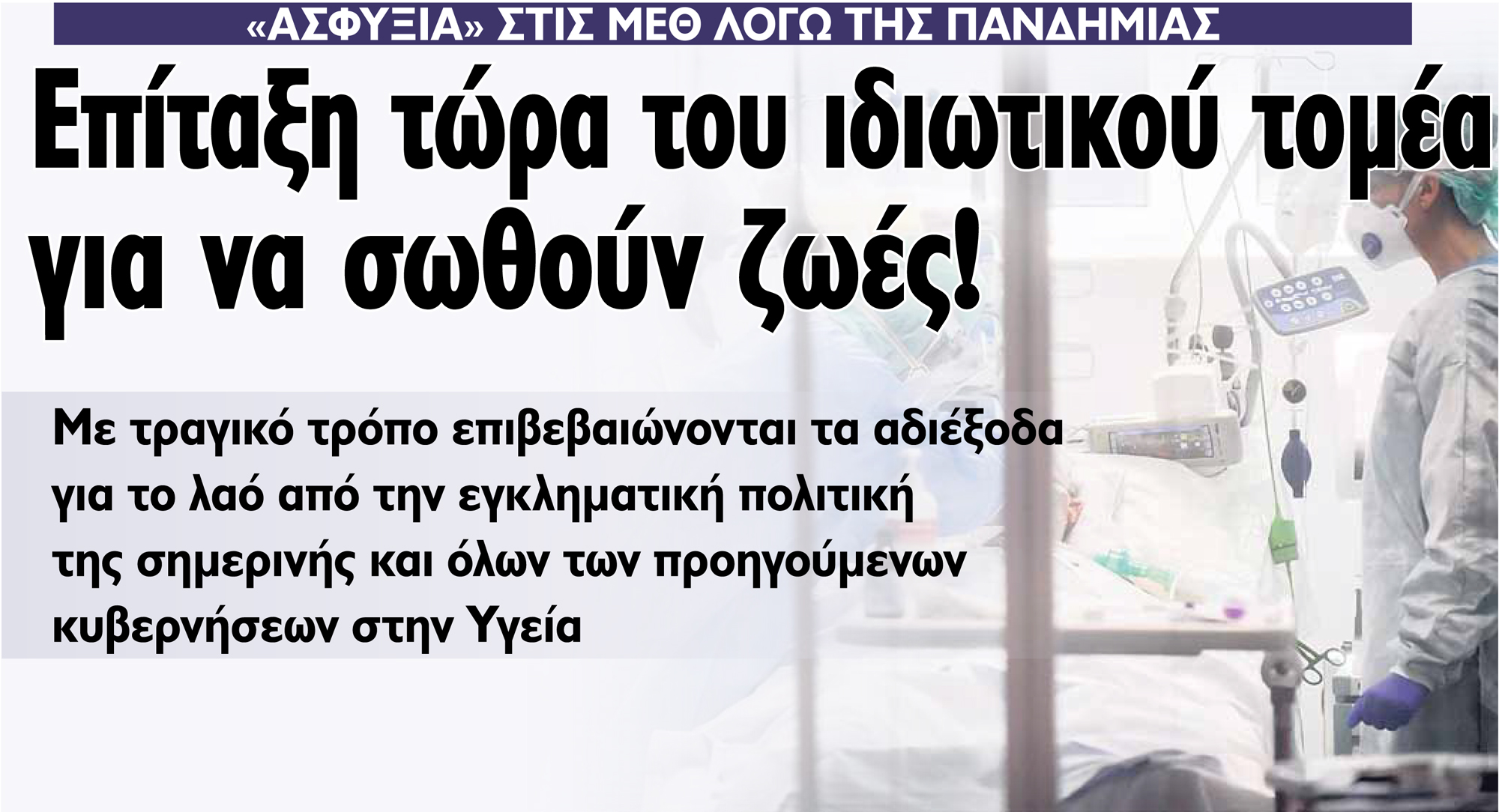 έχει αφήσει τα δημόσια νοσοκομεία χωρίς τα αυτονόητα, αντί να επιτάξει τον