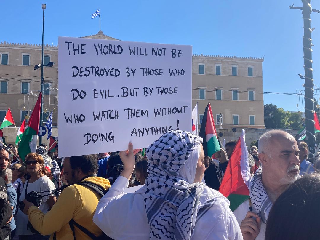 σταματήσει αυτό το μακελειό, και για τη λευτεριά της Παλαιστίνης. Μας