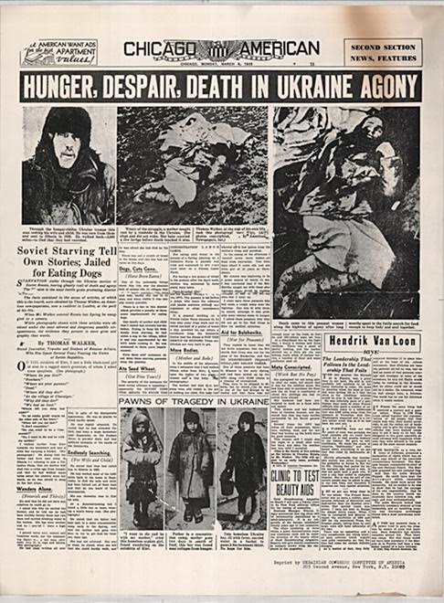 Ακολούθως, το Φλεβάρη του 1935, οι εφημερίδες του Hearst άρχισαν να δημοσιεύουν σειρά άρθρων καταγγέλλοντας μια ανθρωπιστική καταστροφή άνευ προηγουμένου στη σοβιετική Ουκρανία με τουλάχιστον 6.000.000 θύματα: Συνέπεια ενός σκληρού, απάνθρωπου, ανθρωποφάγου κομμουνιστικού καθεστώτος.