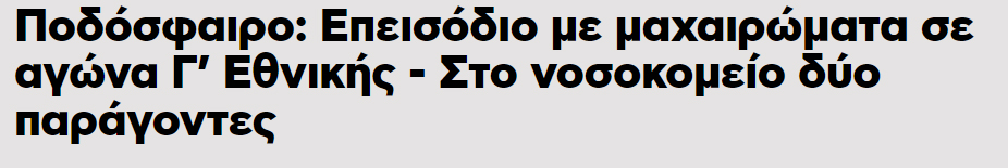 Ποδόσφαιρο: Επεισόδιο με μαχαιρώματα σε αγώνα Γ’ Εθνικής στην Ημαθία