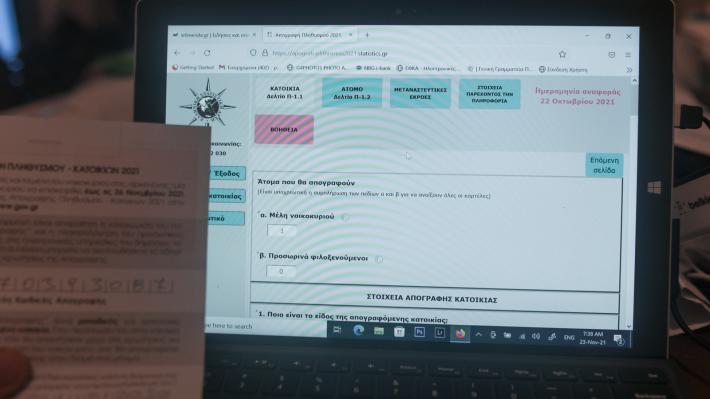 Επισημαίνεται ότι η συμμετοχή στην Απογραφή είναι υποχρεωτική και τα στοιχεία που συλλέγονται είναι εμπιστευτικά, δεν διαβιβάζονται ή κοινοποιούνται σε οποιονδήποτε δημόσιο ή ιδιωτικό φορέα και χρησιμοποιούνται μόνο για την παραγωγή συγκεντρωτικών στατιστικών στοιχείων. Σημειώνεται ότι στο πλαίσιο της Απογραφής δεν συλλέγονται ευαίσθητα προσωπικά δεδομένα».