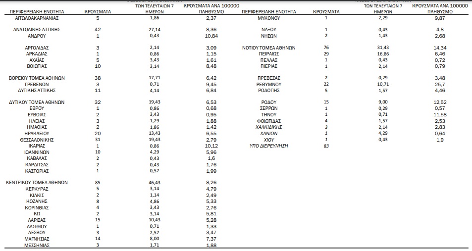 Τα νέα εργαστηριακά επιβεβαιωμένα κρούσματα της νόσου που