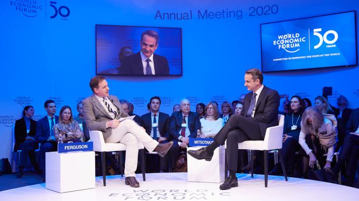 Ανάλογο ήταν το κεντρικό νόημα της συζήτησης που είχε ο πρωθυπουργός, παρουσία κοινού, με τον καθηγητή Ιστορίας των πανεπιστημίων Harvard και Stanford,N. Ferguson, στο Νταβός, καθώς όπως ανέφερε«το κλίμα έχει αλλάξει στην Ελλάδα και σοβαρές μεταρρυθμίσεις γίνονται στην κατεύθυνση της εξασφάλισης ενός περιβάλλοντος φιλικού σε επενδύσεις».Προέβαλε δε το γεγονός ότι πλέον υπάρχει μία σταθερή κυβέρνηση με καθαρή λαϊκή εντολή, κάτι που διασφαλίζει ότι«δεν θα γίνουν εκλογές μέχρι το 2023, οπότε και υπάρχει ένα καθαρό σκηνικό για εκείνους που κοιτούν τα μακροοικονομικά μεγέθη».
