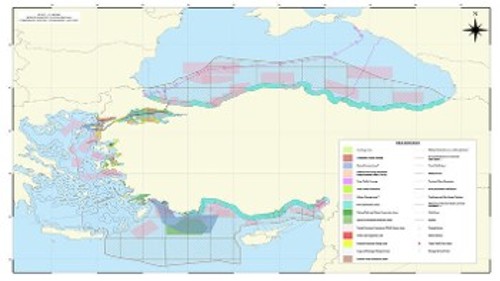 Συγκεκριμένα, τοΚέντρο Ναυτικού Δικαίου της Τουρκίαςκοινοποίησε χάρτη με δύο θαλάσσια πάρκα:Ενα στο Βόρειο Αιγαίο,το οποίο εκτείνεταιέξω από τα χωρικά ύδατα της Τουρκίας, δυτικά της Ιμβρου και Τενέδου, μεταξύ Σαμοθράκης και Λήμνου. Κιένα δεύτερο στην Ανατολική Μεσόγειο, το οποίοπερικυκλώνει το Καστελόριζο, καθώς ξεκινάει βορειοανατολικά της Ρόδου και φτάνει μέχρι και στα ανοιχτά του Κόλπου της Αττάλειας.