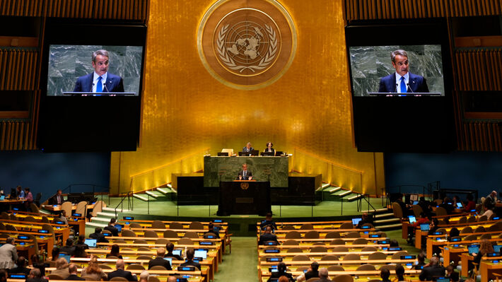 Με την «ατζέντα» του ΝΑΤΟ και της ΕΕ που έχει βάλει «φωτιά» στην Ευρώπη, στη Μέση Ανατολή και σε όλο τον πλανήτη εμφανίστηκε ανά χείρας ο πρωθυπουργός,Κυρ. Μητσοτάκης,στην ομιλία του στη Γενική Συνέλευση του ΟΗΕ.