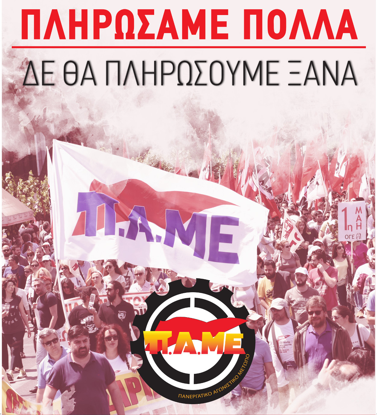 ΠΑΝΕΡΓΑΤΙΚΟ ΑΓΩΝΙΣΤΙΚΟ ΜΕΤΩΠΟ Πληρώσαμε πολλά! Δεν θα πληρώσουμε ξανά!