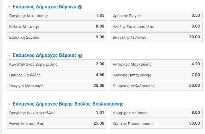 Η Στοιχηματική εταιρεία Stoiximan.gr έβαλε στη διαδικασία της και τα στοιχήματα για τις επερχόμενες εκλογές (ευρωεκλογές, περιφερειακές, δημοτικές). Στοιχήματα που αφορούν εκλογή υποψηφίων, ποσοστά, διαφορές κομμάτων κ.α. ( Ανάμεσα σ’αυτές την περιφέρεια Κ. Μακεδονίας αλλά και τον Δήμο Βέροιας- ΦΩΤΟ.)