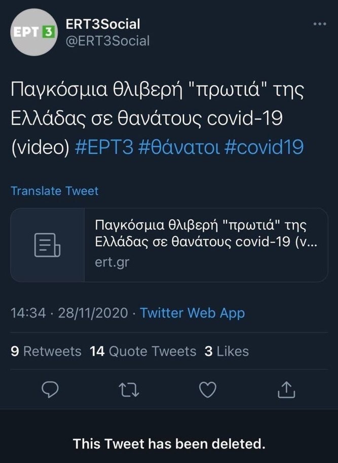 αντίθετα αποκρύφτηκε. Όταν μάλιστα αυτό αναδείχτηκε σε τουιτ της ΕΡΤ 3, αποσύρθηκε