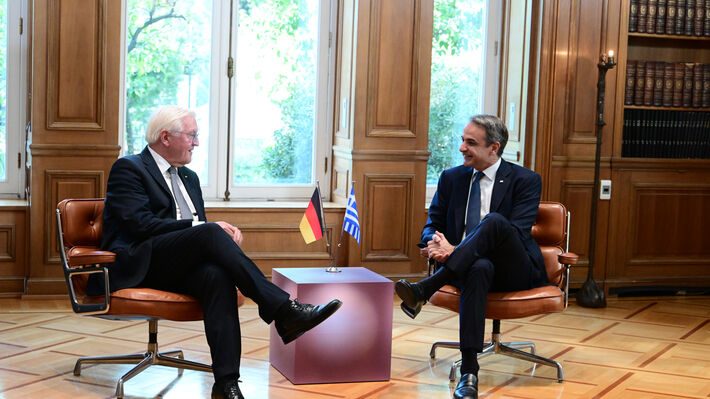 Κατά τη συνάντηση του Κυρ. Μητσοτάκη με τον Γερμανό πρόεδρο ανταλλάχθηκαν και από τις δύο πλευρές φιλοφρονήσεις για τη θετική πορεία της ελληνικής οικονομίας, με τον Έλληνα πρωθυπουργό να δηλώνει μάλιστα πως«ηΕλλάδα πηγαίνει πολύ, πολύ καλύτερα στο πεδίο της οικονομίας».Από πλευράς του, ο Φ. Β. Σταϊνμάιερ εξέφρασε τη χαρά του «που η Ελλάδα έχει επιστρέψει σε τροχιά οικονομικής ανάπτυξης, τροφοδοτώντας τις διμερείς οικονομικές μας συναλλαγές, και ότι οι γερμανικές εταιρείες εξακολουθούν όχι μόνο να είναι παρούσες αλλά και να επενδύουν εδώ, στην Ελλάδα».