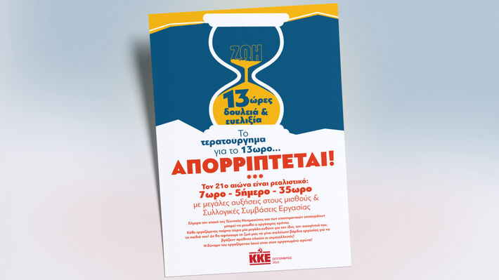«Το τερατούργημα για το 13ωρο απορρίπτεται. Τον 21ο αιώνα είναι ρεαλιστικό: 7ωρο,5ήμερο,35ωρο με μεγάλες αυξήσεις στους μισθούς και Συλλογικές Συμβάσεις Εργασίας»