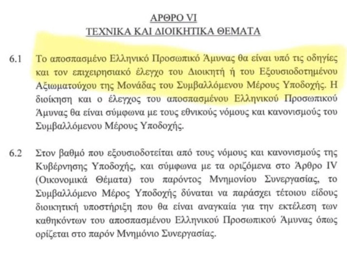 Διαβάζοντας τα συγκεκριμένα άρθρα κατανοούμε όσους γελούν μόλις ακούν για τις διαβεβαιώσεις του κ.Μητσοτάκη σύμφωνα με τις οποίες δεν υπάρχει περίπτωση να δούμε ελληνικά στρατεύματα στην Ουκρανία. Με βάση αυτά που διαβάζουμε αν οι ΗΠΑ θελήσουν να «βάλουμε ένα χεράκι» έστω και βοηθητικά στην Ουκρανία δεν θα μας το ζητήσουν απλώς! Θα μας υπενθυμίσουν τι έχουμε υπογράψει!Αυτά αποτελούν μέρος της ελληνοαμερικανικής αμυντικής συμφωνίας την οποία μας σέρβιραν με «γαρνιτούρα» θριάμβου και ως «αμερικανική ασπίδα» έναντι της τουρκικής απειλής!