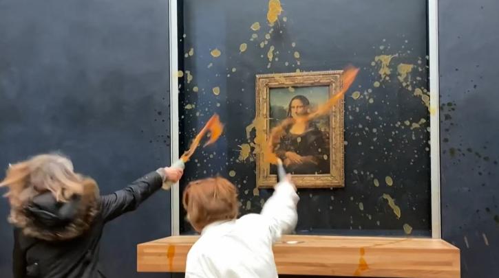 Ακτιβιστές εκτόξευσαν σούπα πάνω στη Μόνα Λίζα του Λεονάρντο ντα Βίντσι, στο Παρίσι.