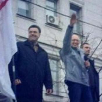 Ο νέος πρωθυπουργός της Ουκρανίας, Αρσένι Γιατσενιούκ, στέλεχος του κόμματος της Τιμοσένκο χαιρετάει φασιστικά!!! Και είναι και κεντροδεξιός όπως τον παρουσιάζουν τα μεγάλη διεθνή ΜΜΕ!!! Αυτή είναι η «δημοκρατία» που «αποκατέστησαν» ΗΠΑ-Ε.Ε στην Ουκρανία. Ας βγάλουμε όλοι μας συμπεράσματα-χρήσιμα και για τις ευρωεκλογές- σχετικά με τον πραγματικό χαρακτήρα της Ε.Ε...