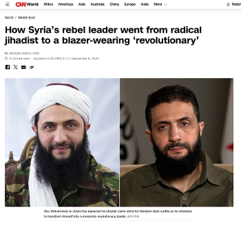 Το CNN - που το 2013 είχε χαρακτηρίσει τον Τζολάνι«έναν από τους δέκα πιο επικίνδυνους τρομοκράτες στον κόσμο», γνωστό για απαγωγές, βασανιστήρια και σφαγές φυλετικών και θρησκευτικών μειονοτήτων - έχει βρεθεί στην αιχμή του δόρατος της ευρωατλαντικής προπαγάνδας. Την ώρα που οι «αντάρτες» του βρίσκονταν έξω από τη Δαμασκό, ο Τζολάνι έδινε αποκλειστική συνέντευξη στο αμερικανικό δίκτυο.