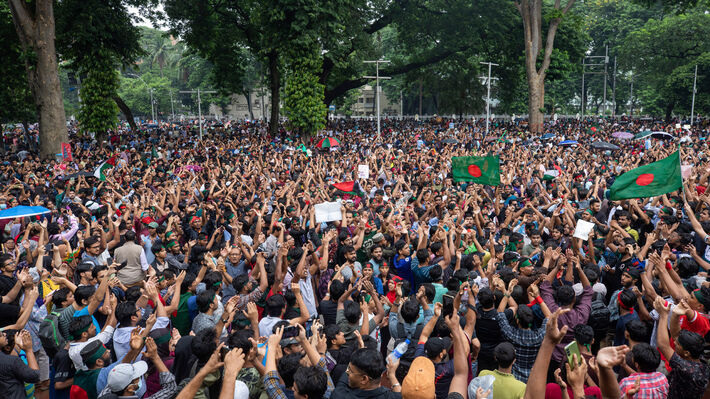 Οι φοιτητικές διαμαρτυρίες ξεκίνησαν τον Ιούλιο με εκκλήσεις για κατάργηση των ποσοστώσεων θέσεων εργασίας στις δημόσιες υπηρεσίες, αλλά κατέληξαν σε αιτήματα για παραίτηση της Χασίνα μετά από 15 χρόνια στην εξουσία.