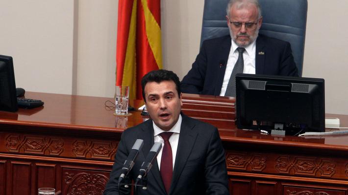 Ο πρωθυπουργός της ΠΓΔΜ μιλώντας, το απόγευμα, από το βήμα της Βουλής, σημείωσε ότι η υλοποίηση της Συμφωνίας των Πρεσπών ανοίγει το δρόμο προκειμένου η χώρα να καταστεί σύντομα το 30ό μέλος του ΝΑΤΟ και να ξεκινήσει, ενδεχομένως τον Ιούνιο, ενταξιακές διαπραγματεύσεις με την ΕΕ. Ισχυρίστηκε ότι με τη Συμφωνία των Πρεσπών, η χώρα του διαφυλάττει τα ζητήματα ταυτότητας και γλώσσας:«Έχουμε σαφή και αναμφισβήτητη επιβεβαίωση για μακεδονική ταυτότητα: Μακεδόνας, Μακεδόνισσα, Μακεδόνες, Μακεδονικό, τόσο στο εσωτερικό, όσο και στο εξωτερικό, με μετάφραση των όρων αυτών, χωρίς περιορισμούς, σε όλες τις γλώσσες του κόσμου, όπως και μακεδονική ταυτότητα για όλες τις χρήσεις. Η Ελλάδα πλέον δεν αμφισβητεί το δικαίωμά μας στον αυτοπροσδιορισμό, το δικαίωμα να έχουμε τη δική μας ταυτότητα. Η μακεδονική γλώσσα θα χρησιμοποιείται ελεύθερα παντού: Στα Ηνωμένα Έθνη, στο ΝΑΤΟ, στην ΕΕ και σε όλους τους επίσημους θεσμούς. Έχουμε συμφωνία που σέβεται τη διαφορετικότητά μας. Έχουμε συμφωνία για μακεδονική γλώσσα και ταυτότητα και χώρα που θα φέρει όνομα αναγνωρισμένο απ΄όλο τον κόσμο: Δημοκρατία της Βόρειας Μακεδονίας»ανέφερε ο Ζάεφ.