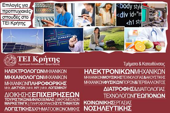 Έχουμε γράψει και άλλες φορές ότι έχουν μετατρέψει την εκπαίδευση σε εμπόρευμα και τα ΑΕΙ-ΤΕΙ σε «καταστήματα» που αναζητούν «πελάτες». Έτσι δεν μας προξένησε εντύπωση η διαφήμιση-Δελτίο Τύπου που λάβαμε από το ΤΕΙ Κρήτης, που προφανώς «ψάχνει» για σπουδαστές!