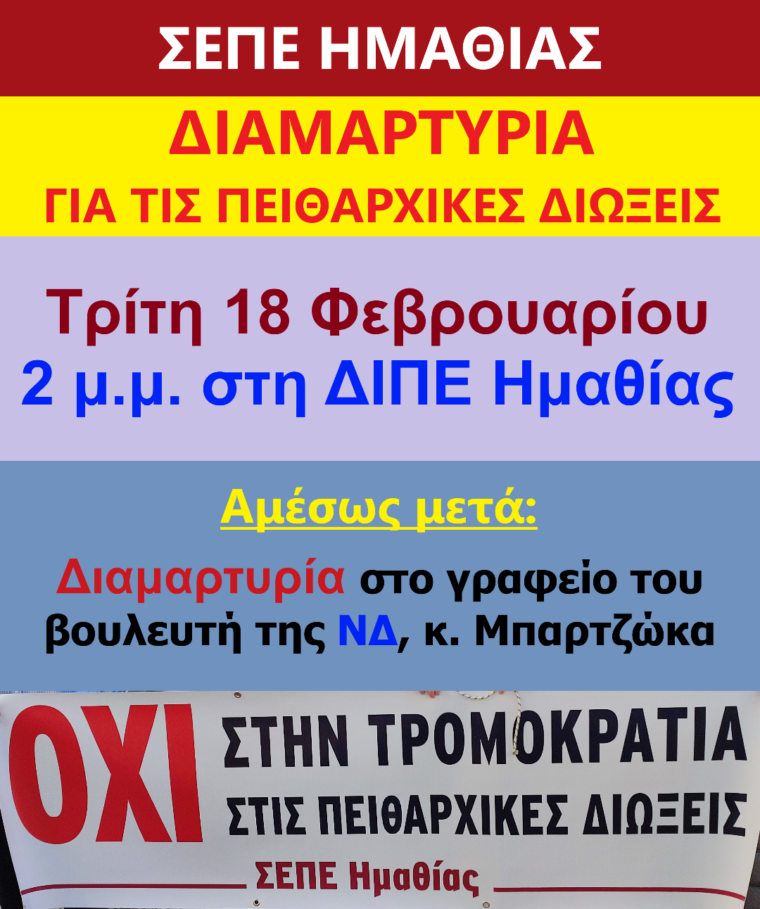 ΔΙΠΕ Ημαθίας και στη συνέχεια συμβολικά στο γραφείο του βουλευτή της ΝΔ, κ.