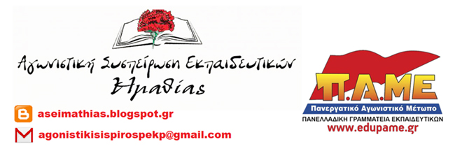 Η Αγωνιστική Συσπείρωση Εκπαιδευτικών Π.Ε. Ημαθίας εκφράζει τον αποτροπιασμό της και την καταδίκη της για την πρωτοφανή επίθεση που εξαπέλυσαν απρόκλητα οι δυνάμεις των ΜΑΤ την Κυριακή 18 Νοεμβρίου ενάντια σε μαθητές, φοιτητές, εκπαιδευτικούς και γονείς που με αποφάσεις των οργάνων τους συγκεντρώθηκαν για να διαδηλώσουν ενάντια στην αντιλαϊκή αντιεκπαιδευτική πολιτική της κυβέρνησης ΣΥΡΙΖΑ – ΑΝΕΛ με αφορμή την παρουσία του Υπουργού Παιδείας Κ. Γαβρόγλου σε εκδήλωση - φιέστα στο 2ο ΓΕΛ Συκεών Θεσσαλονίκης.