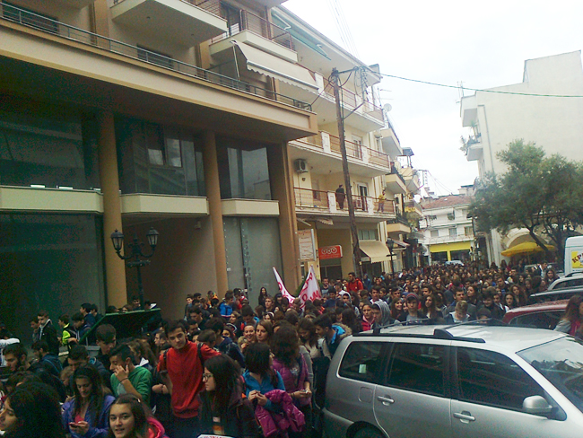 Με μαζικό-μαχητικό και οργανωμένο τρόπο εκατοντάδες μαθητές των Λυκείων της Βέροιας, ανταποκρίθηκαν στο κάλεσμα των 15μελών τους και πραγματοποίησαν συγκέντρωση στην πλατεία Δημαρχείου και στη συνέχεια πορεία στους δρόμους της πόλης μοιράζοντας ταυτόχρονα ανακοίνωση με τα αιτήματα τους. Τη συμπαράσταση τους εκφράσανε εκπρόσωποι του Δ.Σ της ΕΛΜΕ καθώς και του Συλλόγου Δασκάλων. Τα συνθήματα που κυριάρχησαν ήταν: «ΨΩΜΙ – ΠΑΙΔΕΙΑ- ΕΛΕΥΘΕΡΙΑ./ΑΓΩΝΑΣ ΓΙΑ ΔΗΜΟΣΙΑ ΚΑΙ ΔΩΡΕΑΝ ΠΑΙΔΕΙΑ». «ΟΙ ΜΑΘΗΤΕΣ ΔΕΝ ΣΚΥΒΟΥΝ ΤΟ ΚΕΦΑΛΙ/ΠΑΛΕΥΟΥΝΕ ΓΙΑ ΜΟΡΦΩΣΗ ΚΑΙ ΚΟΙΝΩΝΙΑ ΑΛΛΗ», «Η ΜΟΡΦΩΣΗ ΔΕΝ ΕΙΝΑΙ ΚΟΝΣΕΡΒΑ ΝΑ ΠΟΥΛΙΕΤΑΙ/ΔΙΚΑΙΩΜΑ ΜΑΣ ΕΙΝΑΙ ΜΕ ΑΓΩΝΕΣ ΚΑΤΑΚΤΙΕΤΑΙ»