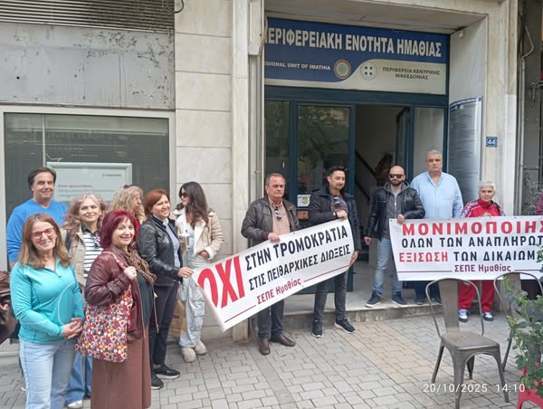 Το Δ.Σ. του ΣΕΠΕ Ημαθίας πραγματοποίησε αγωνιστική κινητοποίηση τη Δευτέρα 20 Οκτωβρίου, στις 2 μ.μ., στη ΔΙΠΕ Ημαθίας, με αιτήματα: