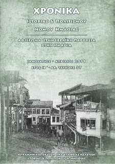 Το 37ο τεύχος των "Χρονικών Ιστορίας και Πολιτισμού Ν. Ημαθίας" αφιερωμένο στην "Εβραϊκή Παρουσία στην Ημαθία" παρουσιάζεται το Σάββατο 21 Σεπτεμβρίου, ώρα 19:00, στην Αντωνιάδεια Στέγη Γραμμάτων και Τεχνών Βέροιας.