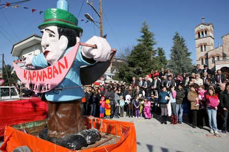 14:00 Παρέλαση αρμάτων, ομάδων καρναβαλιστών και παραδοσιακών συγκροτημάτων.