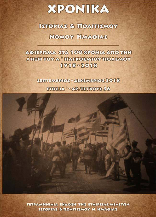 Η Εταιρεία Μελετών Ιστορίας και Πολιτισμού Ν. Ημαθίας και η ΕΦ.Α. Ημαθίας σας προσκαλούν στην παρουσίαση του 36ου τεύχους των Χρονικών Ιστορίας και Πολιτισμού Ν. Ημαθίας, αφιέρωμα στον Α΄ Παγκόσμιο Πόλεμο.