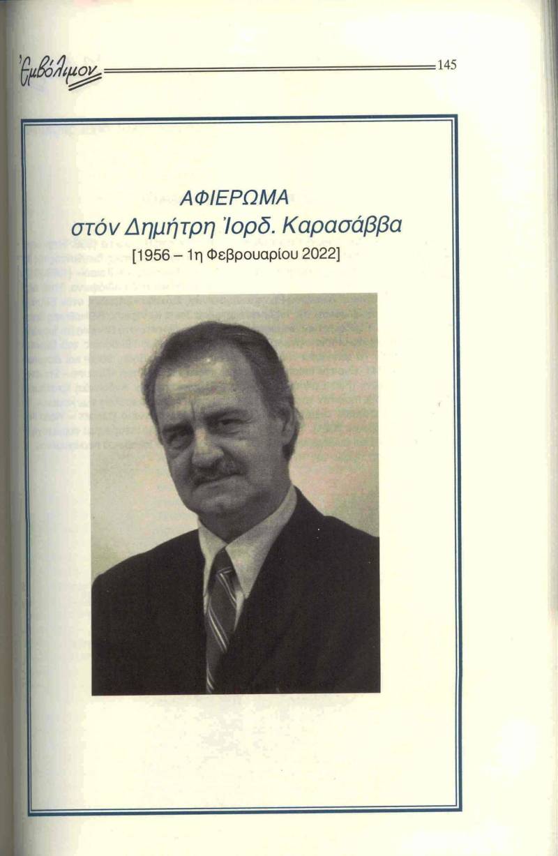 Αφιέρωμα στον Δημήτρη Ιορδ. Καρασάββα στο περιοδικό Εμβόλιμον