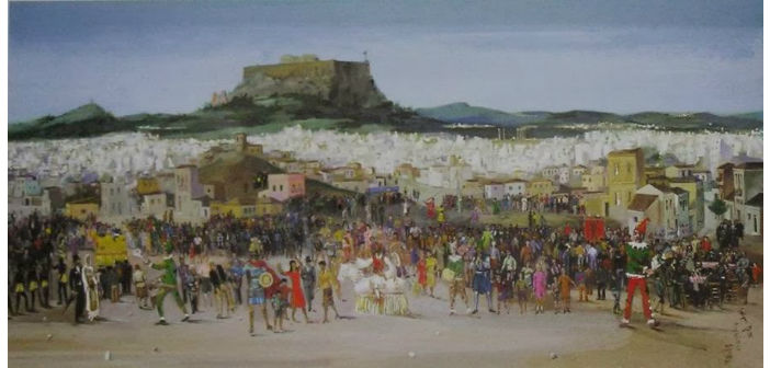 Ο πίνακας είναι του Σπύρου Βασιλείου,«Καρναβάλι στην Αθήνα» 1934