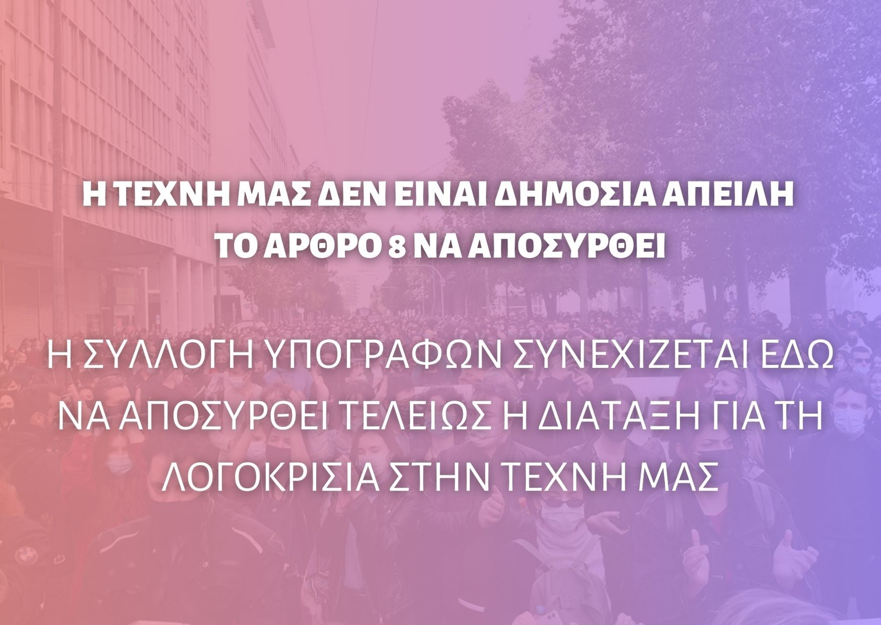 περιεχομένου της Τέχνης. Υπογράφουμε, διακινούμε το ψήφισμα του Π.Μ.Σ.,