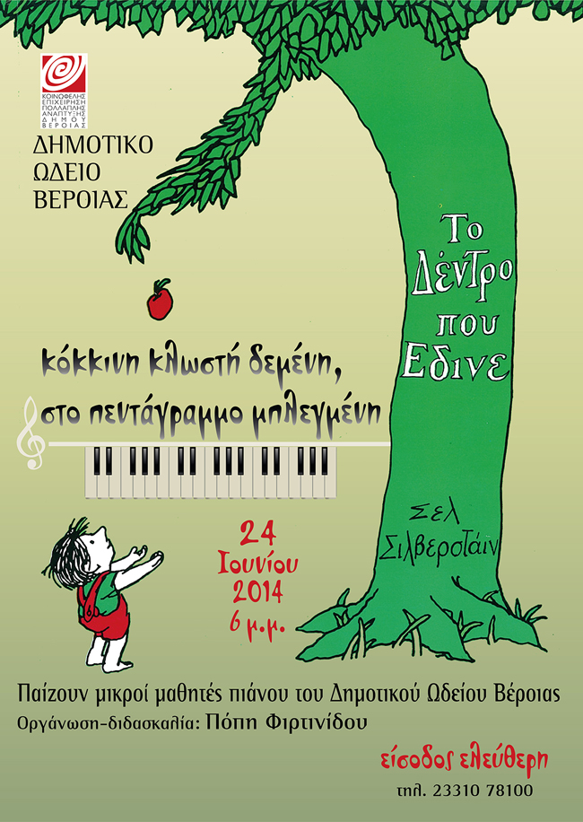 Το παραμύθι του Σελ Σιλβερστάιν Το δέντρο που έδινε αποδίδεται μουσικά από μικρούς μαθητές πιάνου του Δημοτικού Ωδείου.
