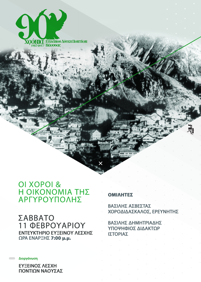 Η Εύξεινος Λέσχη Ποντίων Νάουσας διοργανώνει ομιλία με θέμα «Η Βιβλιοθήκη ως επιζήσασα της Γενοκτονίας των Ποντίων» με ομιλητή τον κ. Λυγερό Νίκο, που θα πραγματοποιηθεί την Τετάρτη 1 Φεβρουαρίου και ώρα 7:00 μ.μ., στην αίθουσα «ΒΕΤΛΑΝΣ». Ο κ. Λυγερός είναι πολυπράγμονας ερευνητής, Στρατηγικός αναλυτής και ένας από τους εξυπνότερους ανθρώπους στον κόσμο. Η παρουσία σας θα μας τιμήσει ιδιαίτερα.