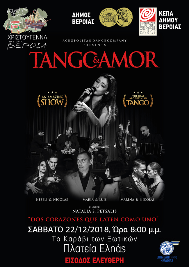 Η παράσταση Tango y Amor υπόσχεται να μας ταξιδέψει στην Αργεντινή και να μας συστήσει τον άκρως ερωτικό χορό Tango. Μια μοναδική εμπειρία που σίγουρα θα μας σαγηνεύσει και θα μας μεταδώσει την φιλοσοφία του Tango στην αυθεντική του μορφή.