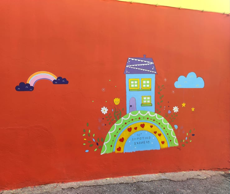 Πρόκειται για μία ξεχωριστή εικαστική παρέμβαση στο 10ο Δημοτικό Σχολείο Βέροιας (Ρωμανού