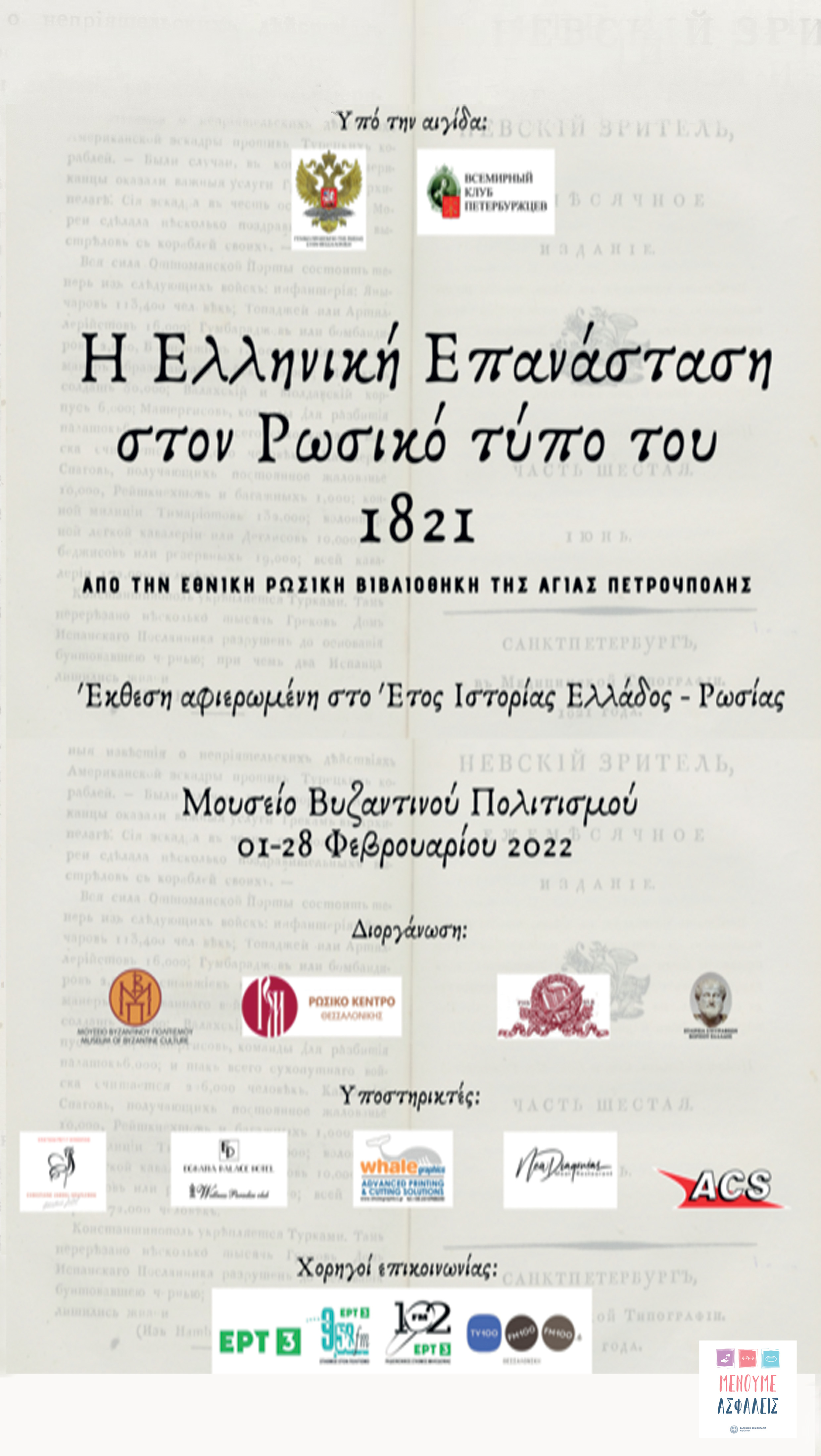 Μουσείο Βυζαντινού Πολιτισμού: «Η Ελληνική Επανάσταση στον ρωσικό τύπο του 1821»