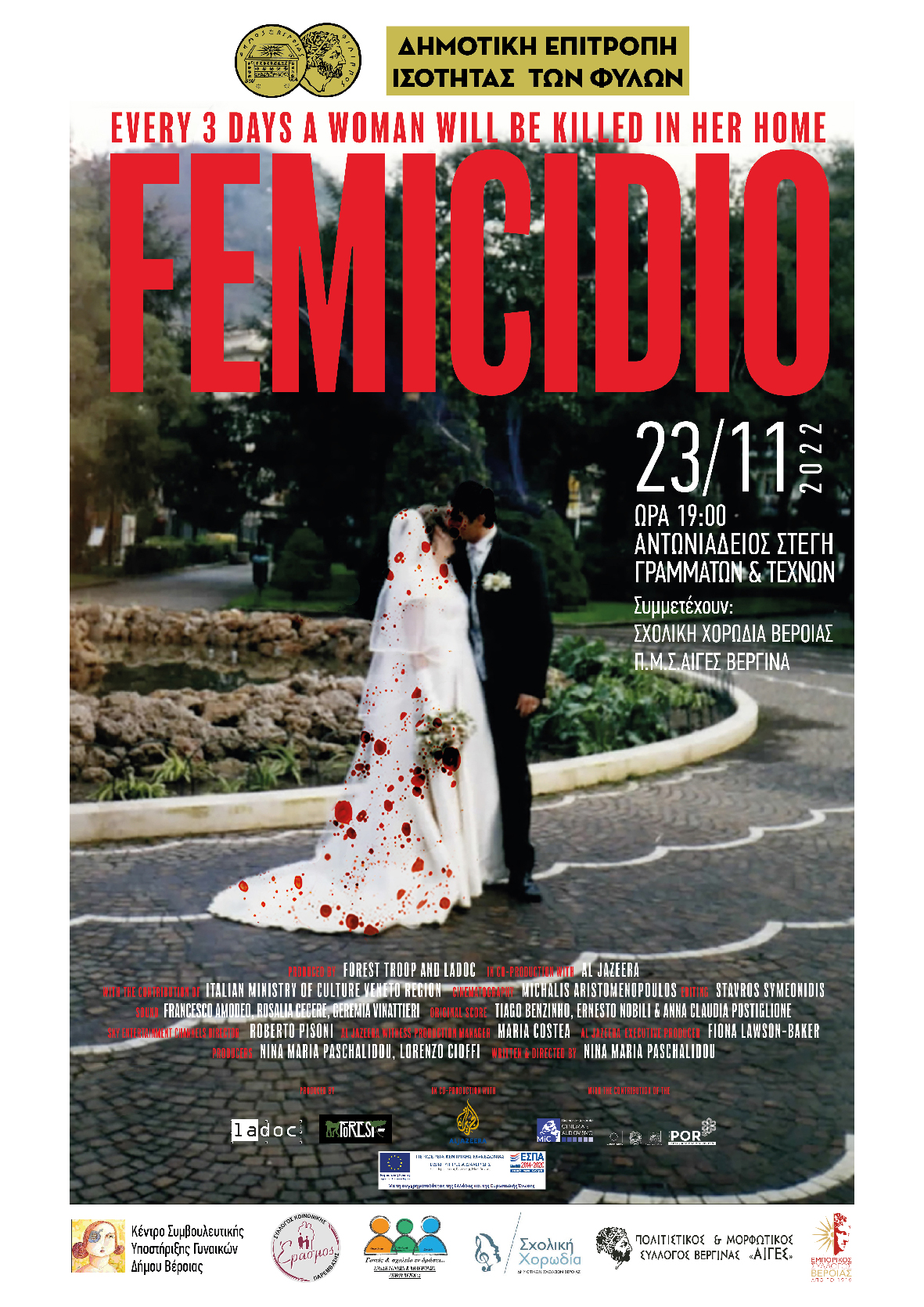 7:00 μ.μ. στην Στέγη Γραμμάτων και Τεχνών Δήμου Βέροιας, θα προβληθεί το ντοκιμαντέρ “FEMICIO”το οποίο