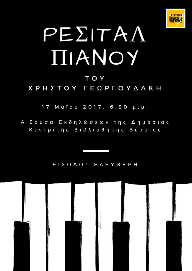 ΡΕΣΙΤΑΛ ΠΙΑΝΟΥ του ΧΡΗΣΤΟΥ ΓΕΩΡΓΟΥΔΑΚΗ ΣΤΗ ΔΗΜΟΣΙΑ ΒΙΒΛΙΟΘΗΚΗ