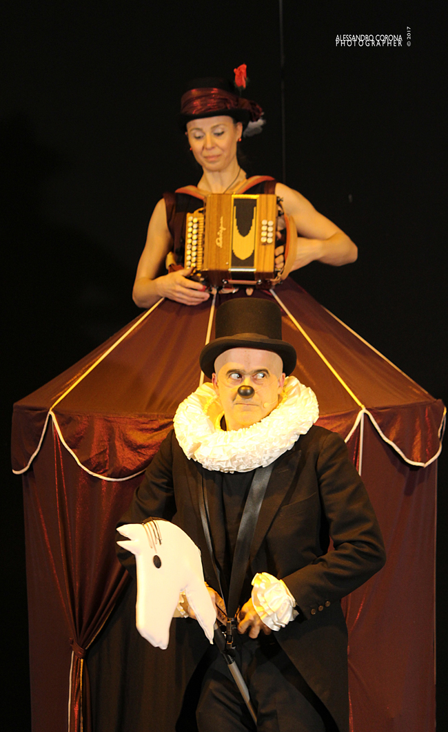 Μια παράσταση που περιλαμβάνει κλόουν, μουσική και παράξενη μαγεία.
