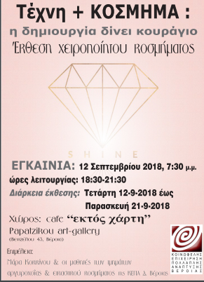 Οι μαθήτριες των τμημάτων αργυροχοΐας & εικαστικού κοσμήματος της ΚΕΠΑ Δ. Βέροιας σας περιμένουν στον υπέροχο χώρο του cafe 'εκτός χάρτη' Papatzikou art-gallery για να απολαύσετε τις κοσμηματικές δημιουργίες τους.