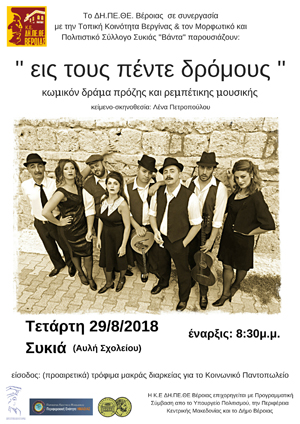 Το ΔΗ.ΠΕ.ΘΕ Βέροιας περιοδεύει «Εις τους πέντε δρόμους!» Πρεμιέρα στη Συκιά, 29.08.2018 και Σάββατο 30.08.2018 πάμε Μπαρμπούτα!