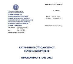 διαμόρφωση του κρατικού προϋπολογισμού για το 2022, το προσχέδιο του οποίου θα