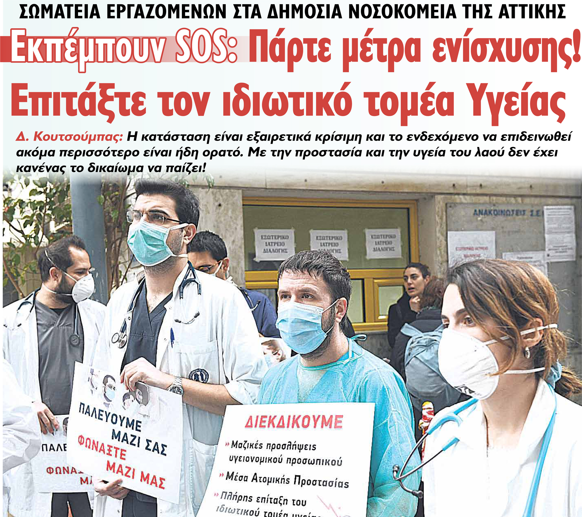 Η απόφαση της κυβέρνησης να επιβάλει ένα νέο lockdown ...μέσα στο lockdown, για να εκτονώσει την πίεση στο δημόσιο σύστημα Υγείας, είναι ομολογία των αδιεξόδων στα οποία οδηγεί τον λαό η πολιτική της εμπορευματοποίησης και ιδιωτικοποίησης της Υγείας. Αυτή η πολιτική, που υλοποιούν διαχρονικά οι κυβερνήσεις και τα αστικά κόμματα, ευθύνεται για το σημερινό χάλι στα νοσοκομεία και στα Κέντρα Υγείας, που κάνει υγειονομικούς, ασθενείς και συνολικά τον λαό να αγανακτούν και να φωνάζουν ότι «δεν πάει άλλο»!