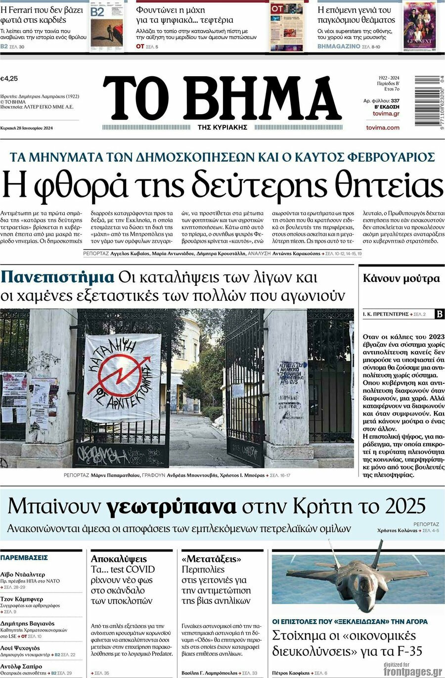 Η 1 σελ. στο σημερινό ΒΗΜΑ είναι ένα ακόμη δείγμα της ανησυχίας του συστήματος στους συνεχιζόμενους- δίκαιους- αγώνες των φοιτητών, μαθητών, εκπαιδευτικών.