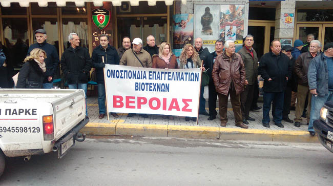 Με πρωτοβουλία του Αγροτικού Συλλόγου Γεωργών Βέροιας (που συσπειρώνεται στο πλαίσιο της Πανελλαδικής Επιτροπής Μπλόκων) και τη συμμέτοχη δεκάδων φορέων της περιοχής πραγματοποιήθηκε μαζικό συλλαλητήριο στην πλατεία Δημαρχείου της Βέροιας το πρωί της Δευτέρας 23/1. Μεταξύ των φορέων ήταν τα εργατικά κέντρα Βέροιας και Νάουσας, το Ν.Τ ΑΔΕΔΥ, ο Εμπορικός Σύλλογος, Ένωση Φοροτεχνικών Ν. Ημαθίας, Ιατρικός Σύλλογος, Οδοντιατρικός Σύλλογος, Φαρμακευτικός Σύλλογος, Δικηγορικός Σύλλογος, Ομοσπονδία Επαγγελματοβιοτεχνών, Οικονομικό Επιμελητήριο, Αστικά και Υπεραστικά λεωφορείων κ.α