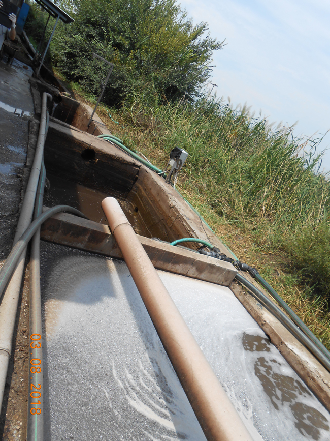 Στις φωτογραφίες που έχουν δοθεί στη δημοσιότητα, δίνονται λεπτομέρειες για τον έλεγχο που διενήργησε η υπηρεσία και για τη λήψη των δειγμάτων, τόσο από τον ενδιάμεσο αποδέκτη, γειτονικό ρέμα της περιοχής, όσο και από τη μονάδα επεξεργασίας λυμάτων. Ωστόσο, στα εν λόγω δημοσιεύματα δεν διευκρινίζεται, ότι όπως φαίνεται στις φωτογραφίες 9 και 10, τα ανεπεξέργαστα λύματα που εισέρχονται για επεξεργασία στη μονάδα μεταφέρονται με αντλίες αναρρόφησης στις δεξαμενές αερισμού και καθίζησης, των φωτ. 4 και 5. Μετά από τις δεξαμενές αυτές γίνεται χλωρίωση και τα επεξεργασμένα λύματα μεταφέρονται στη δεξαμενή της φωτ. 11 (που παρατίθεται εδώ) και από την δεξαμενή αυτή παροχετεύονται στον ενδιάμεσο αποδέκτη. Από την έξοδο της δεξαμενής αυτής ελήφθησαν τα δείγματα της υπηρεσίας, παρουσία του μέλους της οικολογικής ομάδας, που παρακολούθησε όλη τη διαδικασία. Αντιθέτως, η οπή της φωτ. 10, οδηγεί σε κλειστό φρεάτιο και κατά τον έλεγχο της υπηρεσίας δεν παροχέτευε λύματα στον ενδιάμεσο αποδέκτη, ενώ η χρήση της επιτρέπεται μόνο για λόγους ασφαλείας και μόνο προσωρινά σε περίπτωση ατυχημάτων κλπ. Κάθε άλλη χρήση της, εάν διαπιστωθεί αποτελεί παράβαση της κείμενης νομοθεσίας. Στα δημοσιεύματα του τύπου, η δεξαμενή της φωτ. 11 δεν αναφέρθηκε για άγνωστο στην υπηρεσία λόγο.