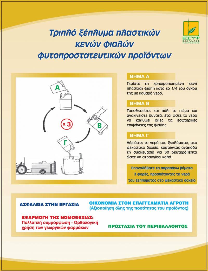 τριπλού ξεπλύματος των πλαστικών φιαλών, αμέσως μετά το άδειασμα του