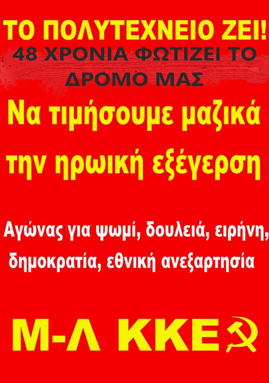 Η εξέγερση του Νοέμβρη φωτίζει τους αγώνες του λαού μας για Ψωμί Παιδεία Ελευθερία Εθνική Ανεξαρτησία