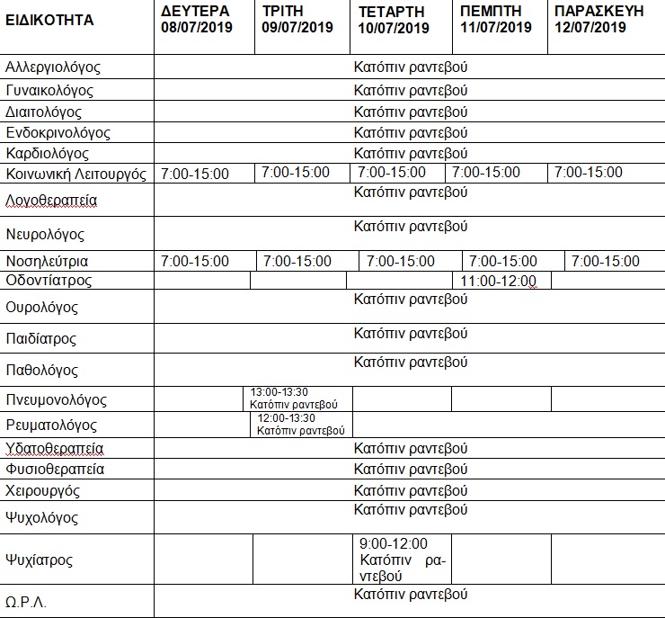 ΕΒΔΟΜΑΔΙΑΙΟ ΠΡΟΓΡΑΜΜΑ ΛΕΙΤΟΥΡΓΙΑΣ ΔΗΜΟΤΙΚΟΥ ΙΑΤΡΕΙΟΥ ΒΕΡΟΙΑΣ 08 12/07/2019